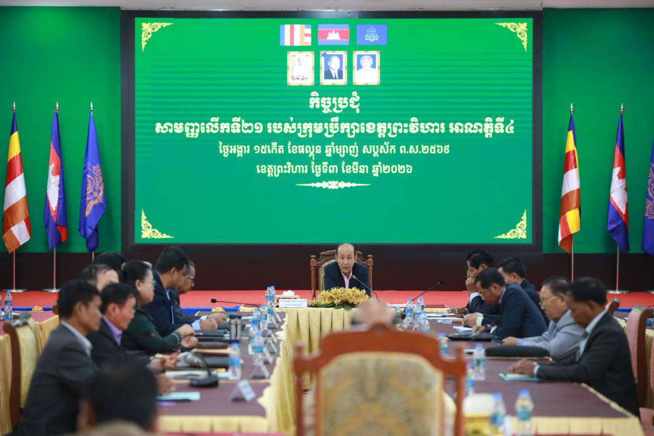 ថ្ងៃអង្គារ ១៥កើត ខែផល្គុន ឆ្នាំម្សាញ់ សប្តស័ក ពុទ្ធសករាជ ២៥៦៩ ត្រូវនឹងថ្ងៃទី៣ ខែមីនា ឆ្នាំ២០២៦, លោកស្រី គង់ ណារ៉ែន អនុប្រធានមន្ទីរសេដ្ឋកិច្ចនិងហិរញ្ញវត្ថុខេត្តព្រះវិហារ បានចូលរួមកិច្ចប្រជុំសាមញ្ញលើកទី២១ របស់ក្រុមប្រឹក្សាខេត្តព្រះវិហារ អាណត្តិទី៤ ក្រោមអធិបតីភាព ឯកឧត្តម ខូយ ឃុនហ៊ សមាជិកក្រុមប្រឹក្សាខេត្តព្រះវិហារ តំណាងដ៏ខ្ពង់ខ្ពស់ឯកឧត្តម ប្រាក់ សុវណ្ណ ប្រធានក្រុមប្រឹក្សាខេត្ត និងលោក មិន ស៊ីថា អភិបាលរងខេត្ត តំណាងឯកឧត្តម គីម រិទ្ធី អភិបាលខេត្តព្រះវិហារ ព្រមទាំងមានការចូលរួមឯកឧត្តម លោកជំទាវ សមាជិកក្រុមប្រឹក្សាខេត្ត អភិបាលរងខេត្ត តំណាងសាលាដំបូងខេត្ត ព្រះអាជ្ញាអយ្យការអមសាលាដំបូងខេត្ត នាយករដ្ឋបាលសាលាខេត្ត នាយកទីចាត់ការចំណុះរចនាសម្ព័ន្ធសាលាខេត្ត មេបញ្ជាការកងកម្លាំងទាំង៣ ប្រធានមន្ទីរ អង្គភាពជុំវិញខេត្ត ប្រធានក្រុមប្រឹក្សា-អភិបាលក្រុង ស្រុក មន្រ្តីពាក់ព័ន្ធជាច្រើនរូប នៅសាលប្រជុំសាលាខេត្តព្រះវិហារ។