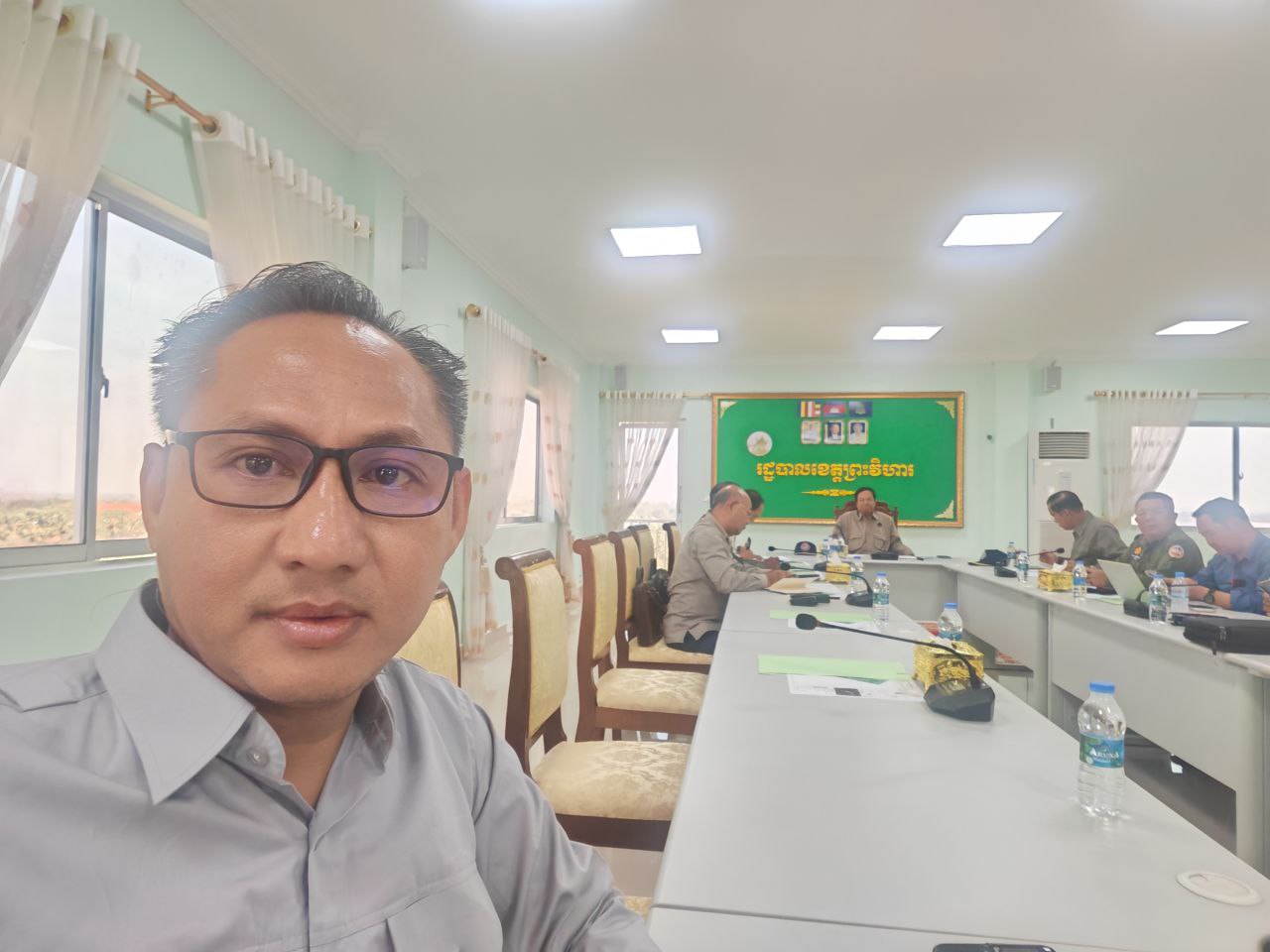 ថ្ងៃពុធ ២កើត ខែផល្គុន ឆ្នាំម្សាញ់ សប្តស័ក ពុទ្ធសករាជ ២៥៦៩ ត្រូវនឹងថ្ងៃទី១៨ ខែកុម្ភៈ ឆ្នាំ២០២៦, លោក ម៉ុម សុទ្ធារ៉ា ប្រធានមន្ទីរសេដ្ឋកិច្ចនិងហិរញ្ញវត្ថុខេត្តព្រះវិហារបានចូលរួមកិច្ចប្រជុំពិភាក្សាអំពីការរៀបចំគ្រប់គ្រងប្រជាពលរដ្ឋភៀសសឹក ក្រោមអធិបតីភាពឯកឧត្តម នាយឧត្តមសេនីយ៍ កិត្តិសង្គហបណ្ឌិត គន់ គីម ទេសរដ្ឋមន្ត្រី អនុប្រធានទី១ នៃគណៈកម្មាធិការជាតិគ្រប់គ្រងគ្រោះមហន្តរាយ និងជាអគ្គលេខាធិការសមាគមអតីតយុទ្ធជនកម្ពុជា និងមានការចូលរួមឯកឧត្តម គីម រិទ្ធី អភិបាលខេត្ត លោកអភិបាលរងខេត្ត នាយករដ្ឋបាលសាលាខេត្ត ប្រធានមន្ទីរ អង្គភាព អភិបាលស្រុកពាក់ព័ន្ធនៅសាលប្រជុំសាលាខេត្តព្រះវិហារ។