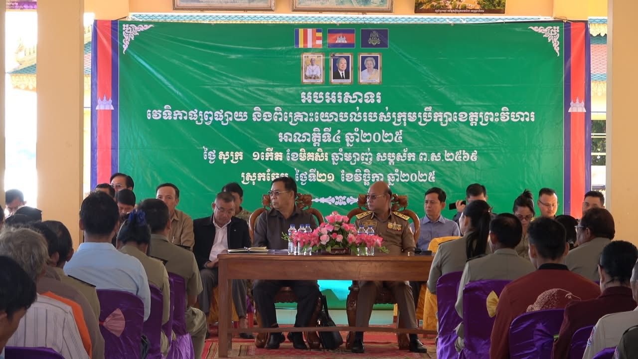 ថ្ងៃសុក្រ ១កើត ខែមិគសិរ ឆ្នាំម្សាញ់ សប្តស័ក ពុទ្ធសករាជ ២៥៦៩ ត្រូវនឹងថ្ងៃទី២១ ខែវិច្ឆិកា ឆ្នាំ២០២៥, លោក ឈួន ដានី អនុប្រធានការិយាល័យលទ្ធកម្ម បានចូលរួមវេទិកាផ្សព្វផ្សាយ និងពិគ្រោះយោបល់ របស់ក្រុមប្រឹក្សាខេត្ត អាណត្តិទី៤ នៅស្រុកគូលែន ដែលវេទិកានេះបានប្រារព្ធ នៅវត្តវេទិការអុំទូកកំពង់ស្រឡៅ ភូមិកំពង់ស្រឡៅ ឃុំកំពង់ស្រឡៅមួយ ស្រុកឆែប ក្រោមអធិបតីភាពរបស់ ឯកឧត្តម តូច វង្ស សមាជិកក្រុមប្រឹក្សាខេត្ត និងលោក មិន ស៊ីថា អភិបាលរងខេត្តព្រះវិហារ។