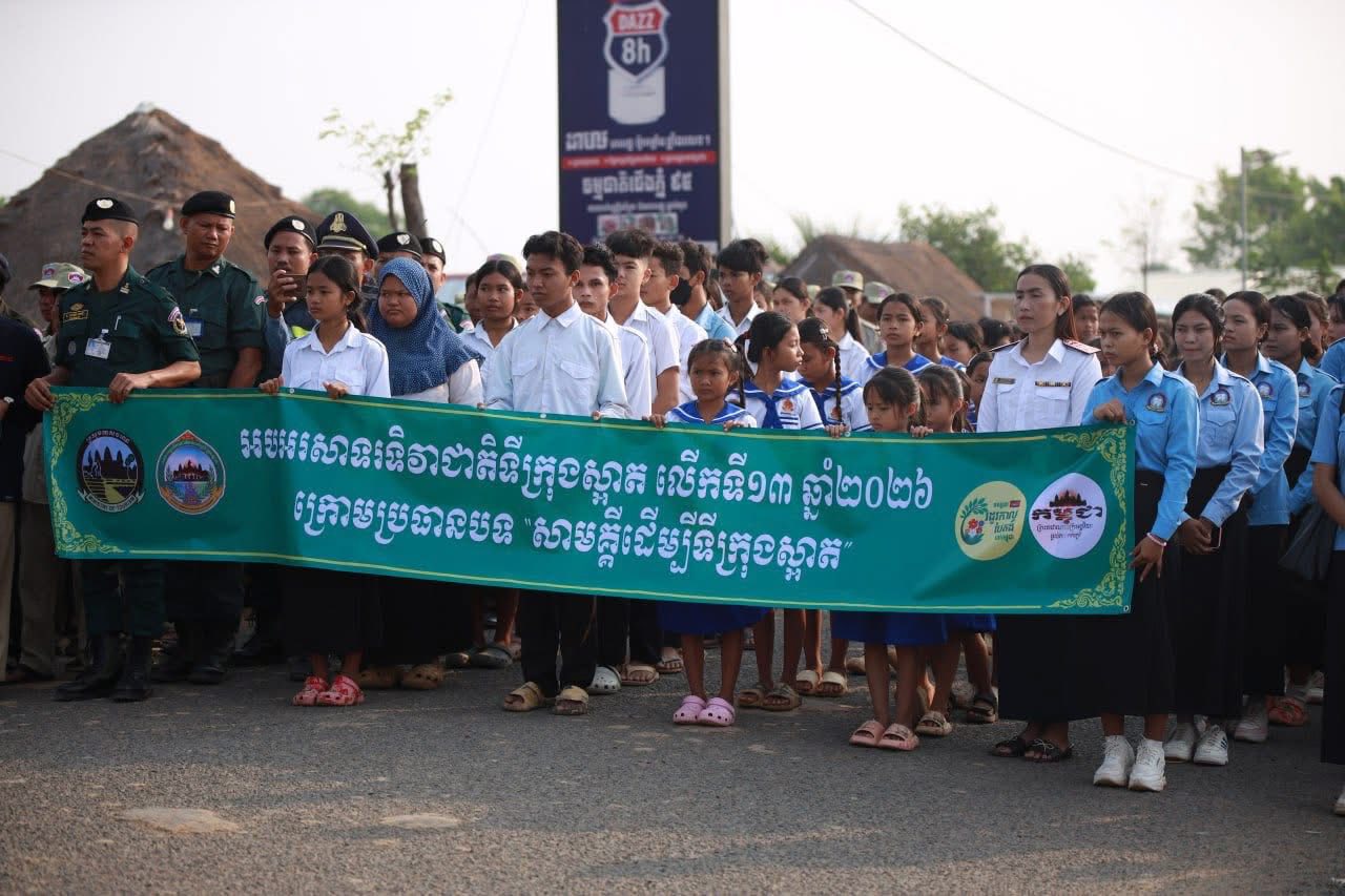 ថ្ងៃសុក្រ ២កើត ខែចេត្រ ឆ្នាំម្សាញ់ សប្តស័ក ពុទ្ធសករាជ ២៥៦៩ ត្រូវនឹងថ្ងៃទី២០ ខែមីនា ឆ្នាំ២០២៦, លោក ម៉ុម សុទ្ធារ៉ា ប្រធានមន្ទីរសេដ្ឋកិច្ចនិងហិរញ្ញវត្ថុខេត្តព្រះវិហារ បានចូលរួមពិធីអបអរសាទរ ទិវាទីក្រុងស្អាត លើកទី១៣ ឆ្នាំ២០២៦ ក្រោមប្រធានបទ "សាមគ្គីដើម្បីទីក្រុងស្អាត" ក្រោមអធិបតីភាព ឯកឧត្ដម សុខ សាន្តតារ៉ា អភិបាលរងខេត្ត។