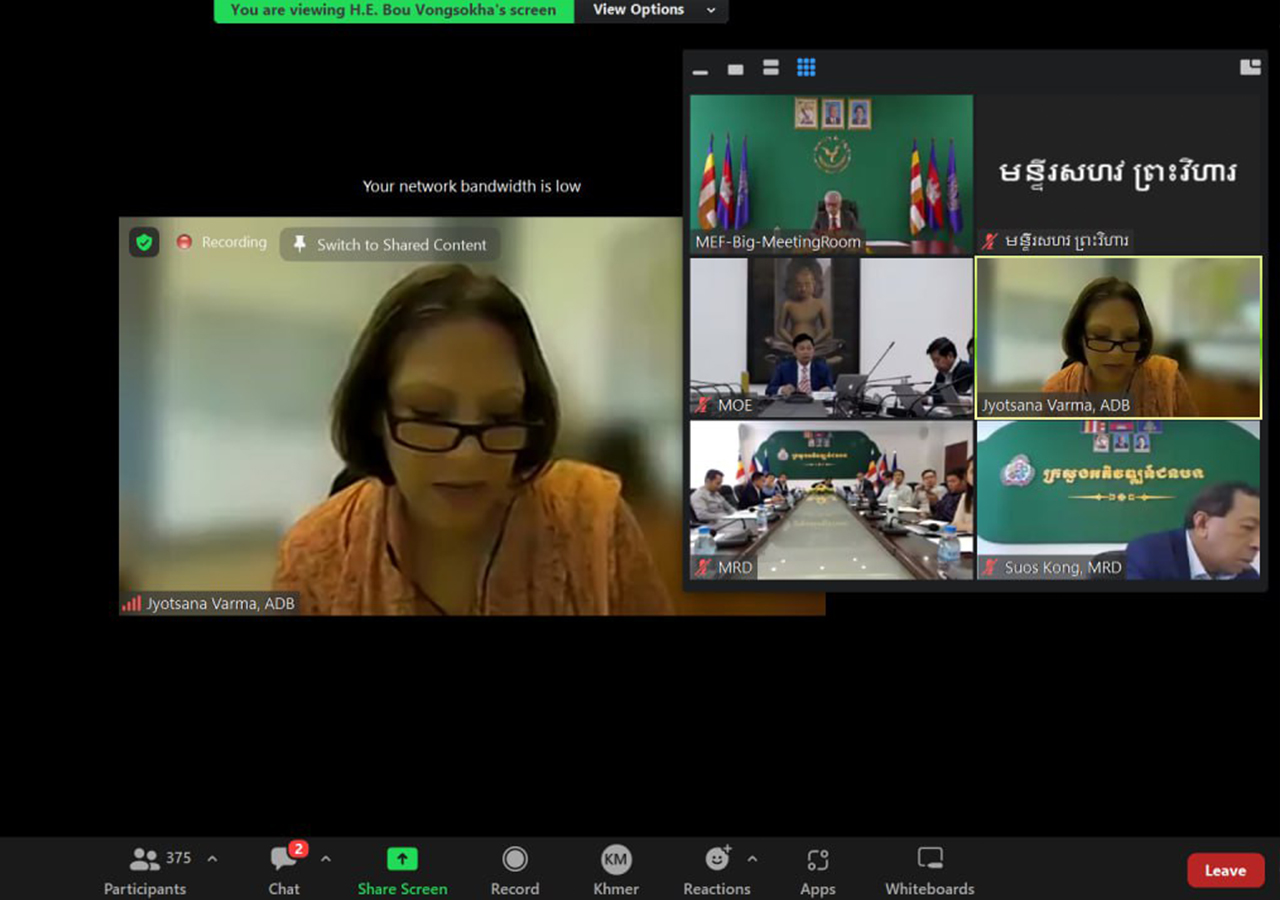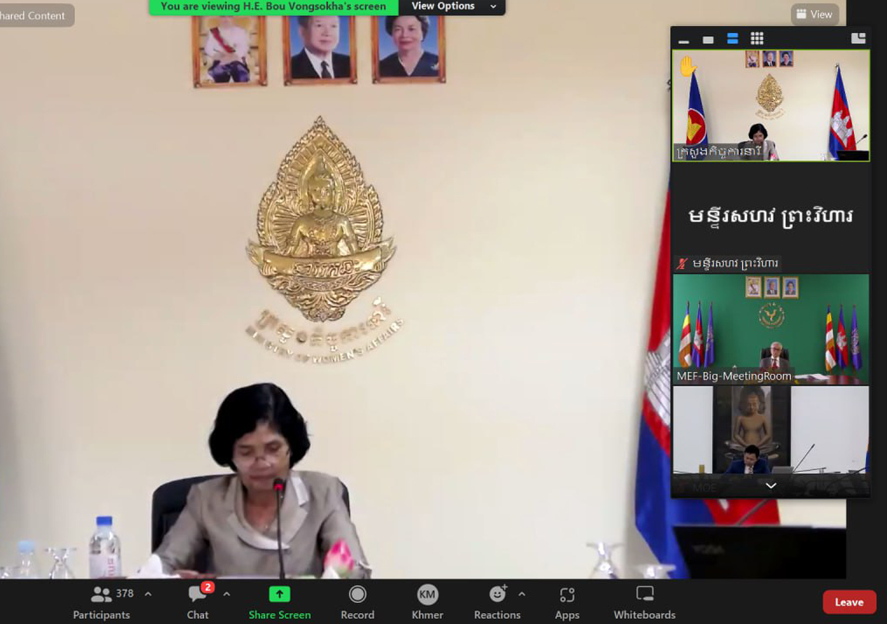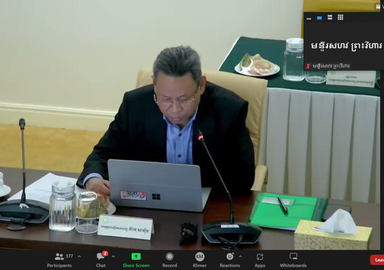 អូន ព័ន្ធមុនីរ័ត្ន ឧបនាយករដ្ឋមន្រ្តី រដ្ឋមន្រ្តីក្រសួងសេដ្ឋកិច្ច និងហិរញ្ញវត្ថុ តាមប្រព័ន្ធវីដេអូ (ZOOM)។